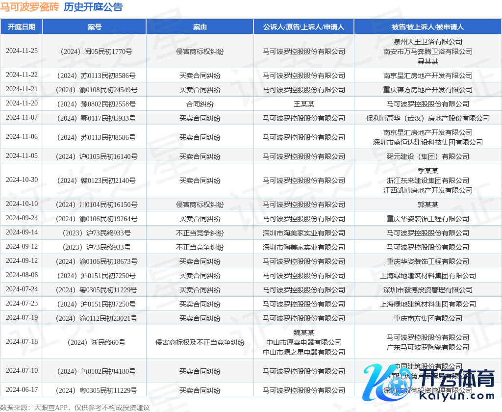 本站音问,阐发天眼查APP败露,近日公布了一则马可波罗控股股份有限公司当作被告/被上诉东谈主的开庭公告,属目执行如下:
