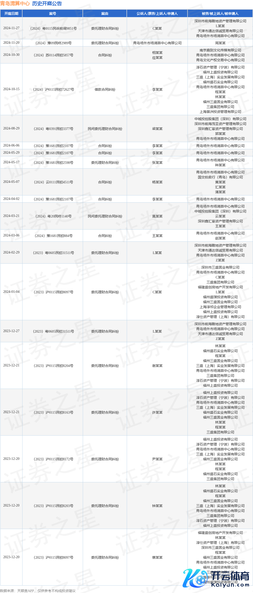 本站音信,凭据天眼查APP清楚,近日公布了一则青岛场外阛阓计帐中心有限公司当作原告/上诉东说念主的开庭公告,详备本色如下: