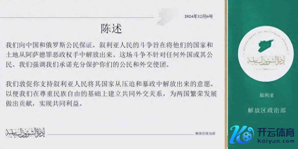 最近,叙利亚的方式出现了急剧的转动,阿萨德政权于内战里的上风约束丧失,大马士革被攻陷,阿萨德赶赴俄罗斯遁迹。恰在这一关键的时刻,叙利亚反对派抛出了一份令东说念主出东说念主料到的“保文凭”开云体育(中国)官方网站,其内容竟然是通过汉语来向中国传达友好与合营的意向。