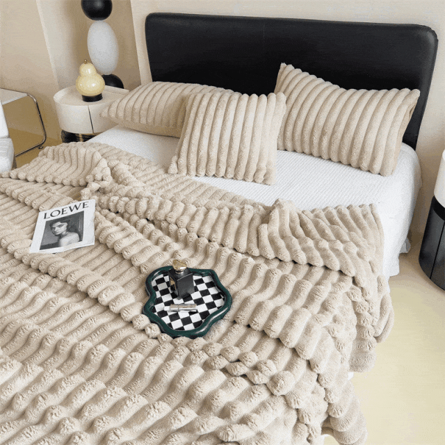 2.双面立体绒条毛毯