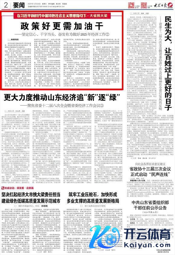 关节之年,关节部署。刚刚休止的中共山东省委十二届八次全体会议暨省委经济办事会议,把大势、谋大事,科学统筹、系统安排,向全省高下发出了激越有为作念好2025年经济办事的动员令——干出“走在前”的状貌,干出“挑大梁”的担当!