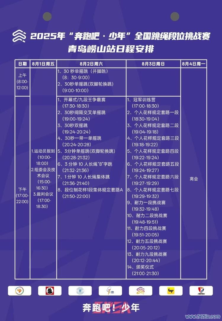 本次比赛由国度体育总局社会体育教导中心、中国毽球跳绳协会专揽,宇宙跳绳推行委员会、崂山区文化和旅游局、崂山区汲引和体育局、崂山旅游集团共同经办,崂山区跳绳解析协会协办,加加互动(厦门)体育产业有限公司、上海大健石体育文化传播有限公司运营,益异日(青岛)体育文化有限公司履行。本次赛事共蛊卦宇宙32支军队近300东说念主参与角逐。其中2025年世界跳绳锦标赛金牌得主赵子鋡、秦钰涵的亮相,更让赛场星光熠熠。