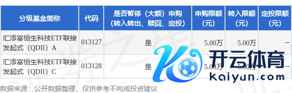 注:1、自2025年09月02日起(含2025年09月02日),汇添富恒生科技ETF调处发起式(QDII)A暂停大额申购、大额调遣转入、大额依期定额投资业务,单日单个基金账户单笔或多笔累计申购、调遣转入、依期定额投资的金额不应跨越50000东谈主民币元(含50000东谈主民币元)。当单日某基金账户单笔或多笔累计申购、调遣转入、依期定额投资该份额的金额跨越50000东谈主民币元,本公司将部分或扫数拒却。该份额暂停上述大额业务时刻,其他业务仍照常办理。本基金汇添富恒生科技ETF调处发起式(QDII)A复原大额申购、大额调遣转入、大额依期定额投资业务的具体时辰将另行公告。2、自2025年09月02日起(含2025年09月02日),汇添富恒生科技ETF调处发起式(QDII)C暂停大额申购、大额调遣转入、大额依期定额投资业务,单日单个基金账户单笔或多笔累计申购、调遣转入、依期定额投资的金额不应跨越50000东谈主民币元(含50000东谈主民币元)。当单日某基金账户单笔或多笔累计申购、调遣转入、依期定额投资该份额的金额跨越50000东谈主民币元,本公司将部分或扫数拒却。该份额暂停上述大额业务时刻,其他业务仍照常办理。本基金汇添富恒生科技ETF调处发起式(QDII)C复原大额申购、大额调遣转入、大额依期定额投资业务的具体时辰将另行公告。